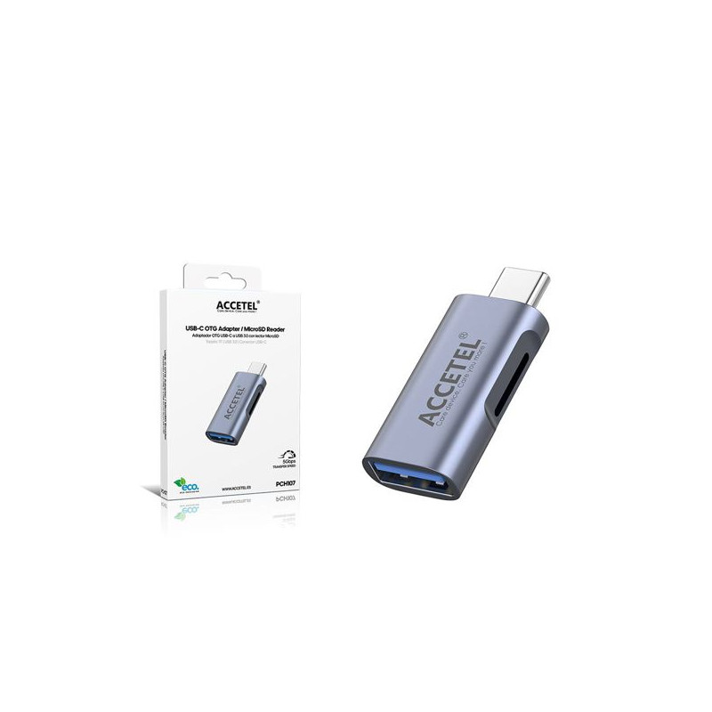 ACCETEL PCH107 Adaptador OTG TYPE-C a USB 3.0 con lector MicroSD