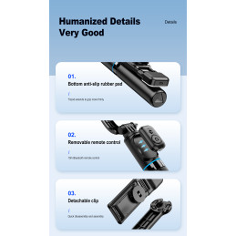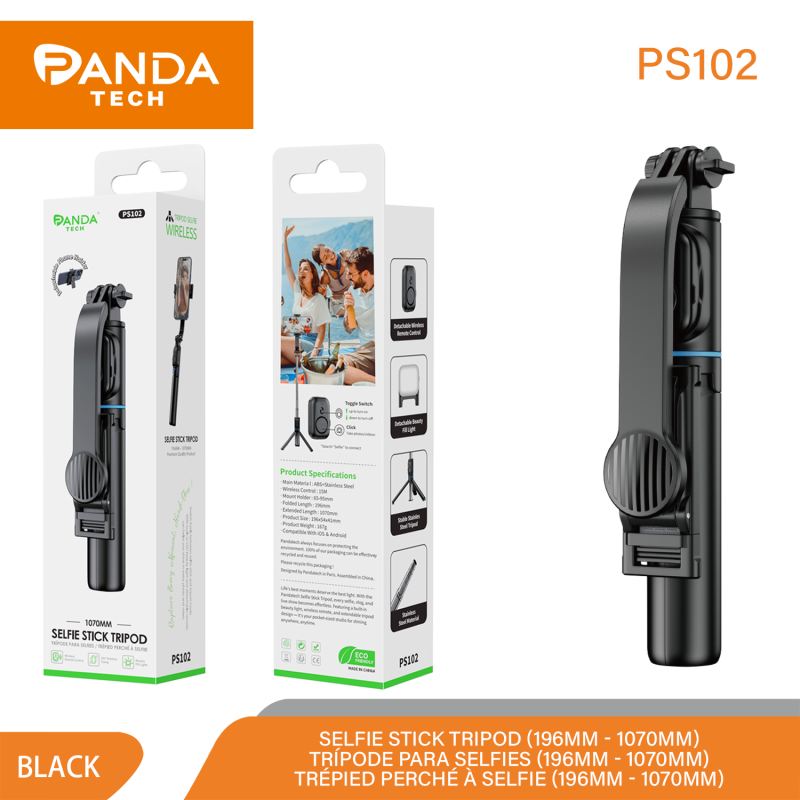 PS102 Palo selfie bluetooth con tripode Negro