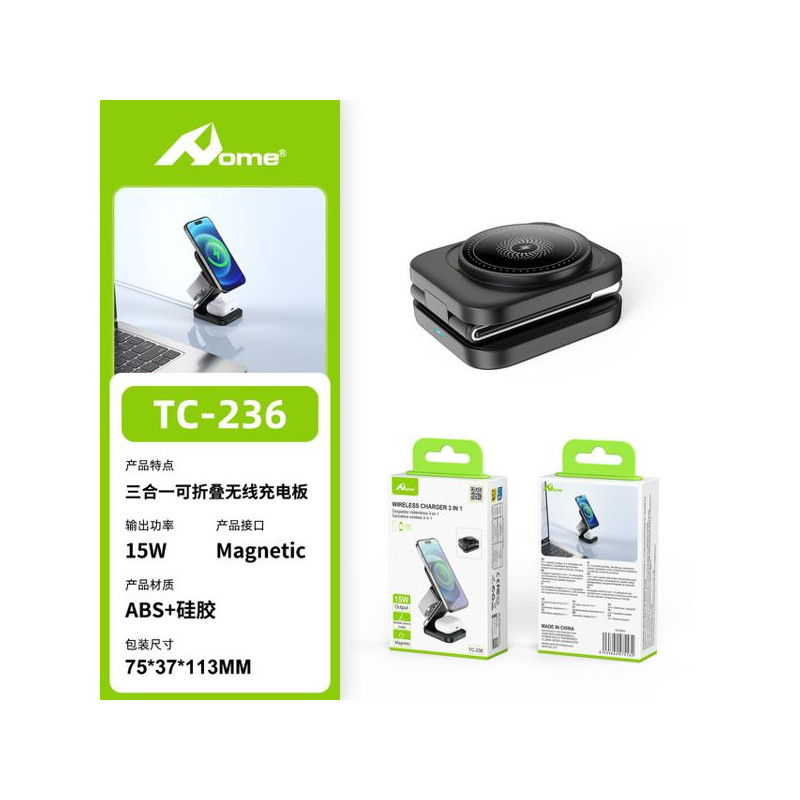 HOME TC-236 Cargador inalambrico 3 en 1 15w
